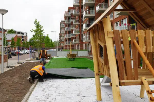 - 4 speel plekken verwijderen bestaande situatie en het herinrichten met Kunstgras en speeltoestellen.
