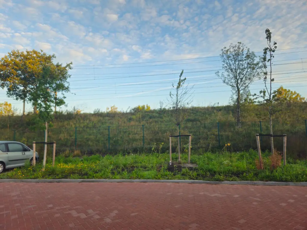 Vervolgens hebben we met een mobiele kraan en knijperauto circa 100 ongebruikte parkeervakken aan de spoorzijde weggehaald. De vrijgekomen ruimte vulden we direct op met goede grond en maakten we gereed voor bomen en beplanting. Terwijl de kraan aan de overkant bezig was, stelde de stratenmaker de opsluitbanden. Daar plaatsten we ook straatmeubilair en hebben wij half-verharding naadloos aangesloten op het bestaande pad.
